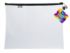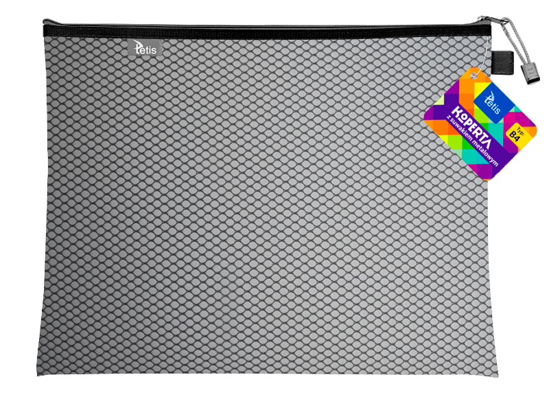 Koperta z suwakiem metalowym, mieszcząca format B4. Miękkie i elastyczne tworzywo. Wymiary koperty: 380x290 mm, grubość: 0,5 mm. Opakowanie: folia 1 sztuka